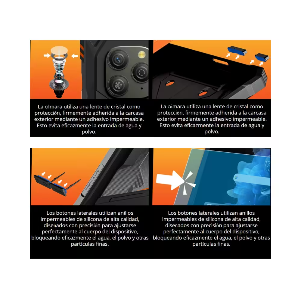 • Construite pour résister à la pluie, au sable, à la poussière, aux vibrations, aux chocs, à l’accélération, aux températures élevées et basses, à l’humidité, à l’altitude et à l’immersion.