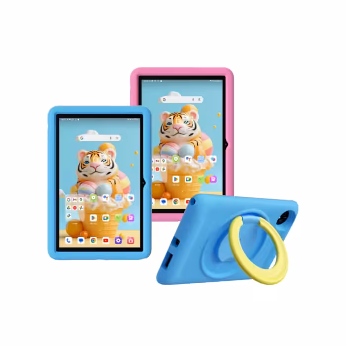 Voici la nouvelle Tablet Tab 80 kids de Blackview, élégante, fine (7,5 mm) et vivante. Elle a un toucher raffiné et une finition mate. Elle offre une bonne autonomie avec sa batterie de 7680 mAh, un poids de 484 grammes et le système d’exploitation Android 14.